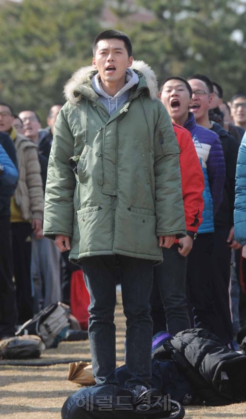 Hyun Bin diantar oleh ribuan fans, hampir 10 ribu orang, termasuk keluarga, media dan fans bukan hanya dari Korea, tapi juga LN di Markas AL Pohang (Hyun Bin akan masuk Angkatan Laut wow, kalau Jo In Sung AU, dan Nam Gil AD)